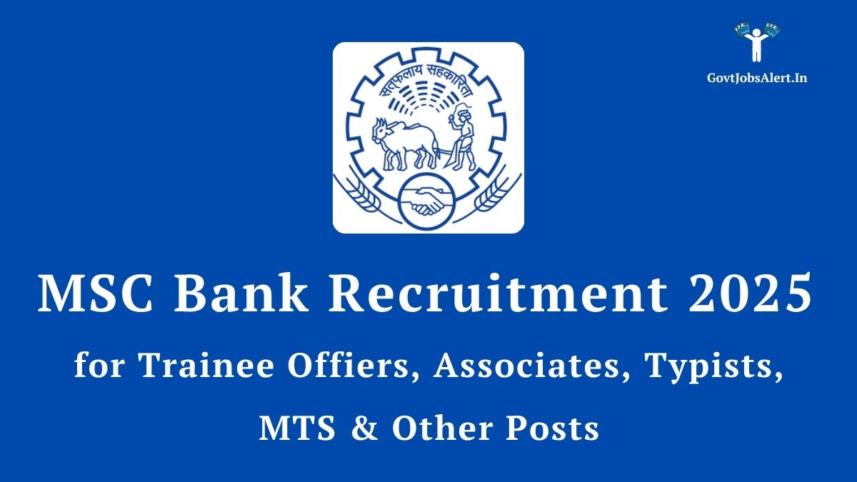 MSC Bank Recruitment 2025 for Trainee Officers, Associates, Typists, MTS & Other Posts